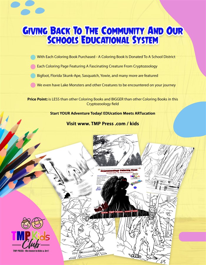 The Cryptozoology Coloring Book Premiere Edition has online buying links that are now active. Orders shipped within 24 hours from Sunday-Thursday. Enjoy!